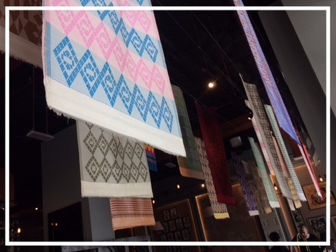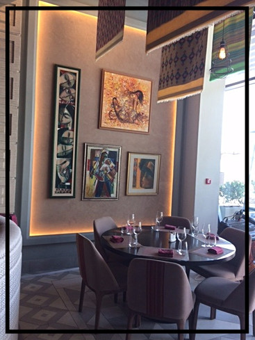 The Interiors - with Ethopian cloth with traditional colours and designs hanging from the ceiling , the amaharic script behind the bar, beautifully painted artifacts used in daily life , photos showing the Ethopian way of life and people ...all came together to create an ambience worth the visit.